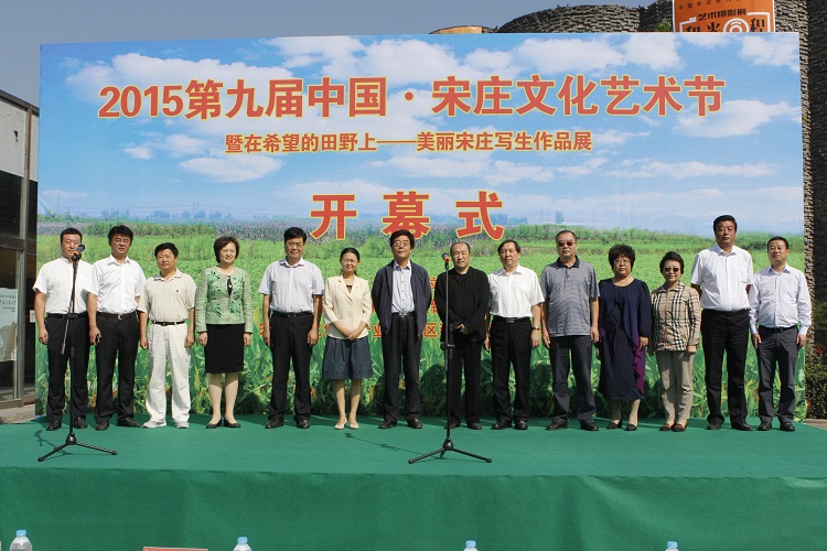 9月26日上午,汇聚当代先锋艺术力量的2015第九届中国•宋庄文化艺术节暨在希望的田野上——美丽宋庄写生作品展在宋庄上上国际美术馆隆重开幕。开幕式现场,国家画院常务副院长卢禹舜同志、通州区委常委、宣传部长肖志刚同志、通州区人大常委会副主任刘汝林同志、通州区政府副区长李亚兰同志、通州区政协副主席季志会同志、通州区文化委党委书记、主任王立生同志、通州区工商联党组书记曹恒永同志、通州区广电中心主任王志刚同志 ,宋庄镇党委书记、人大主席李霞同志,宋庄镇党委副书记、镇长柳德利同志, 宋庄文化创意产业集聚区建设管委会主任刘永忠同志等区、镇领导,以及全镇47个村支部书记、村主任、艺术家和宋庄商会会员企业、媒体各届精英悉数莅临。宋庄镇党委副书记李树东同志主持本次开幕式。